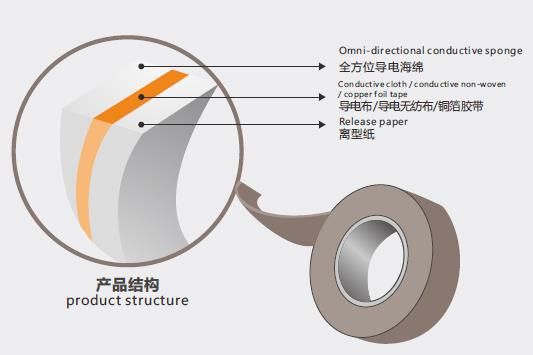 聚酯海绵电镀铜、镍后与导电布、无纺布、铜箔等一种或多种组合加工制