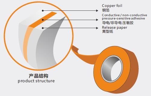 压延或点解铜箔通过涂布工艺涂抹压敏胶或导电压敏胶加工制成。